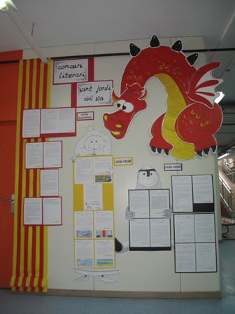 El dia 23 d’abril, diada de San Jordi, una de les activitats que van tenir lloc al centre va ser el concurs literari en què participen tots els nivells. El lema té sempre relació amb el projecte interdisciplinari, per això en aquesta edició els dibuixos i textos va estar relacionats amb les festes a Catalunya.