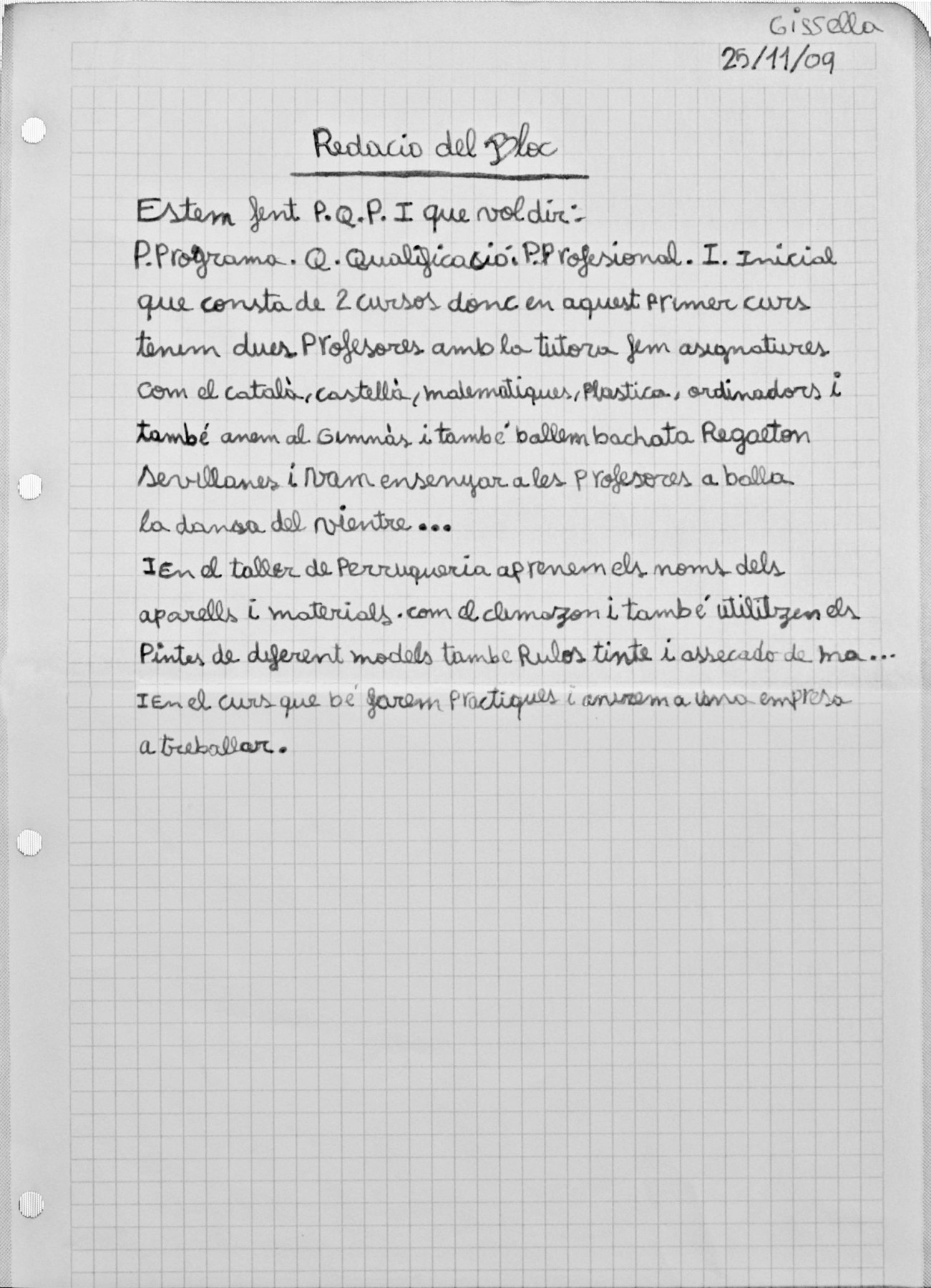 Un altre redacció escollida per totes les alumnes resumint el PQPI.