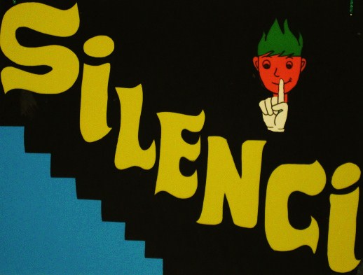 La Tània pensant. I què pensa? Això és el que més mola! Mireu tot rumiant quin cartellet de silenci ha ideat. Obviament no hem trigat res a fer-ho per què la idea era bona.