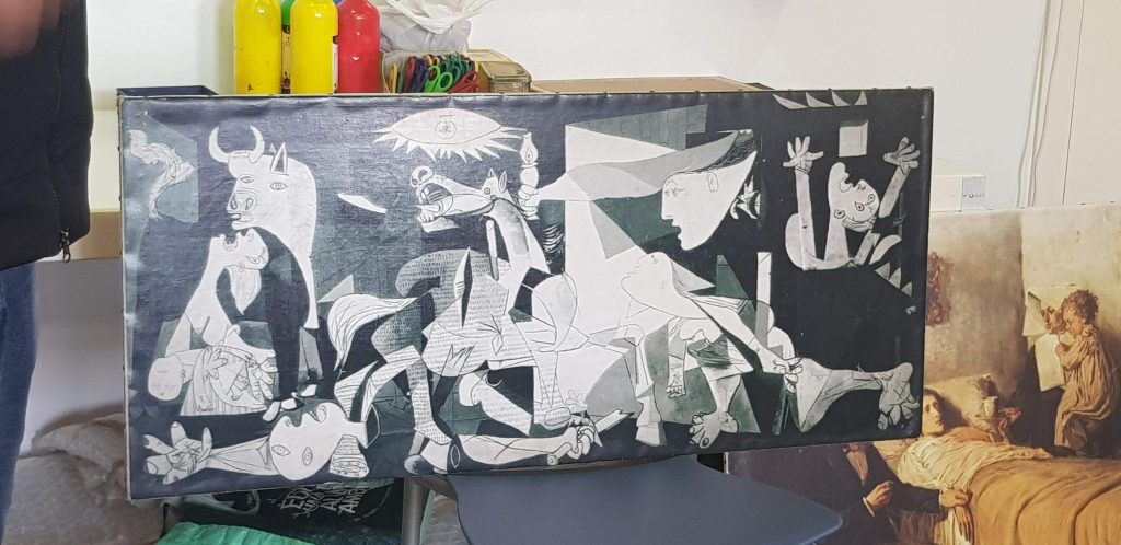 Vam estar molt atents i gaudir de les explicacions d’en Xavi, dels jocs amb els diferents elements: lluna, escales, nens, nenes, sol. I el que més ens va agradar és fer de pintors. QUINES OBRES MÉS BONIQUES!!!!
