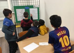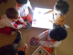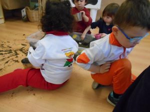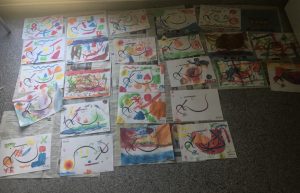 Vam estar molt atents i gaudir de les explicacions d’en Xavi, dels jocs amb els diferents elements: lluna, escales, nens, nenes, sol. I el que més ens va agradar és fer de pintors. QUINES OBRES MÉS BONIQUES!!!!