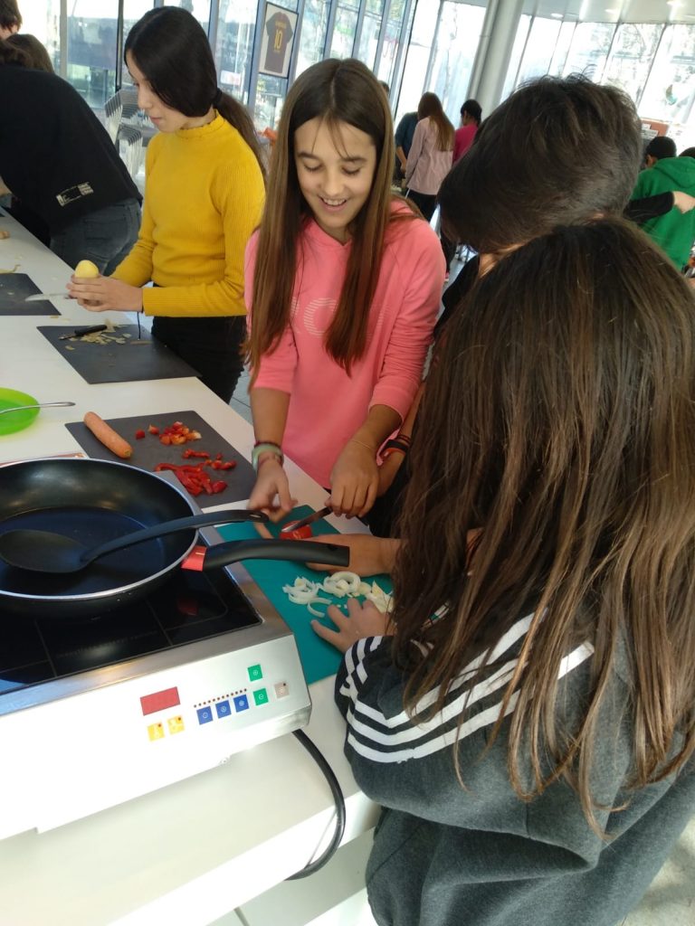 El correfogons, un concurs per promoure la pràctica culinària i els bons hàbits alimentaris, En aquest taller, dividits per equips, van participar en un concurs de cuina molt especial. Com uns xefs professionals, formant equips de treball, van havar de preparar una recepta en un temps determinat. Mentre cuinaven, cada equip havia de respondre preguntes relacionades amb l’alimentació saludable, els productes de temporada, etc. Els equips que responien correctament obtinien aliments o estris extres per millorar la seva recepta. Una activitat dinàmica i divertida, en la qual els alumnes van aprendre recursos per a una alimentació saludable i equilibrada.
