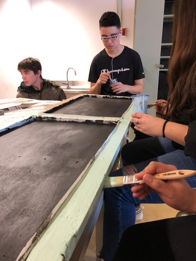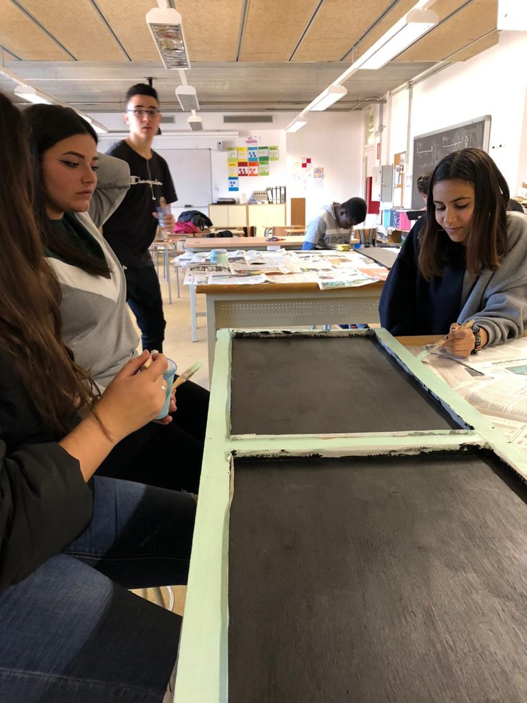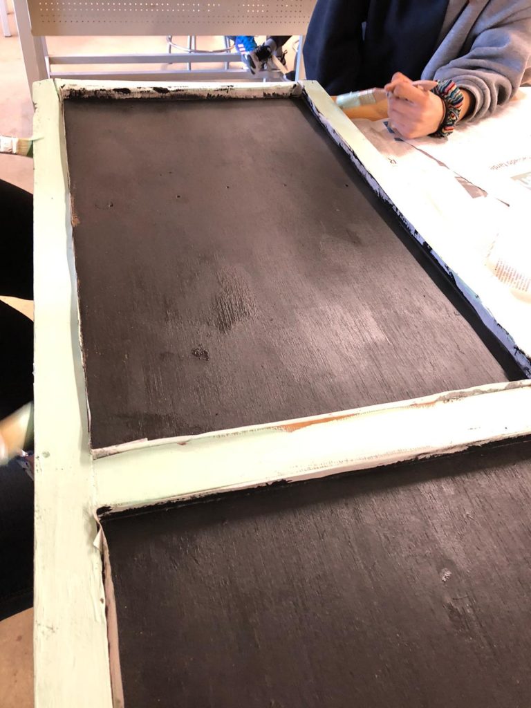 L’alumnat d’Aula oberta estan dissenyant i construint les pissarres, que serviran de cartelleres a La Gastroneta. En aquests plafons s’hi mostraran els productes i preus, que podran comprar els alumnes a les hores de pati.