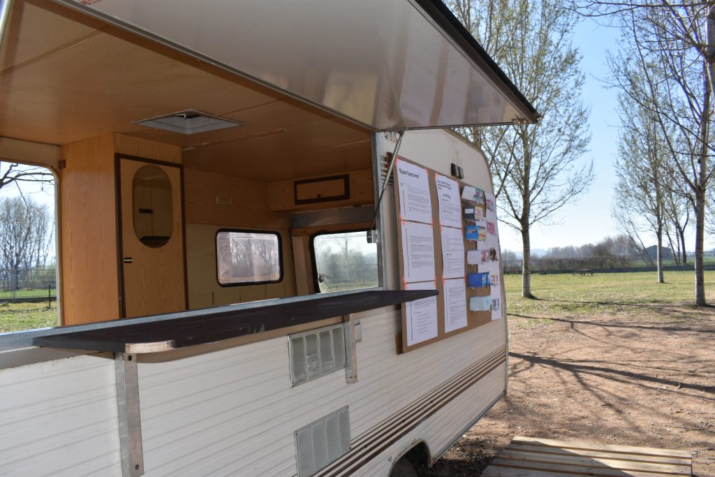 Quin goig que fa la Gastroneta amb la finestreta i el taullell preparats per atendre els clients de La Plana!