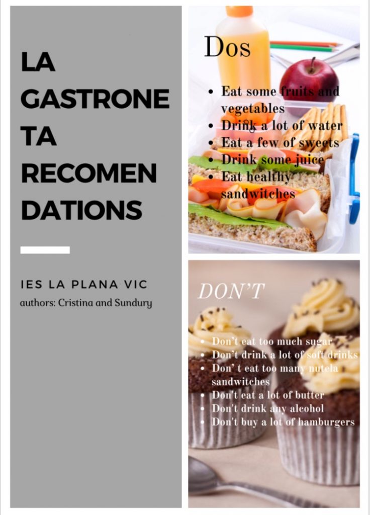El departament de castellà ha treballat el text instructiu a través de receptes saludables de diverses comunitats autònomes i l’alumnat, individualment, ha creat una presentació powerpoint, que ha exposat a la resta de companys.