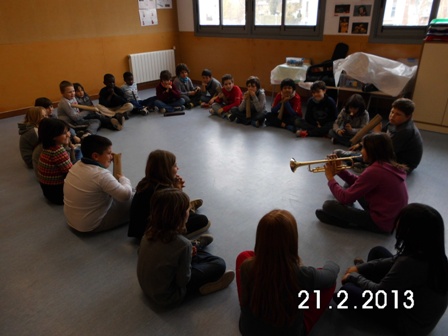 Els alumnes i les alumnes de 4t estem estudiant els instruments de vent metall amb broquet. Aprofitant aquest treball, la Marta Rueda de 4t B ens ha portat una trompeta de veritat.