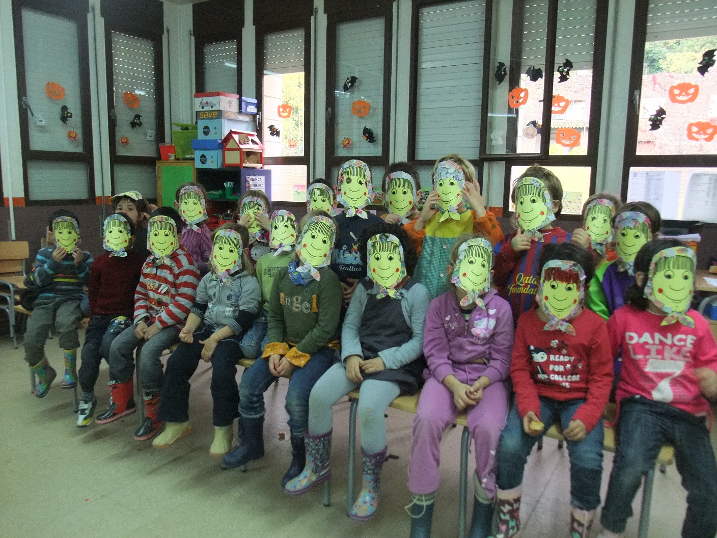Encara que som la classe dels Gegants ara toca fer de Castanyeres. Oi que hem quedat bé? A veure si em trobeu…