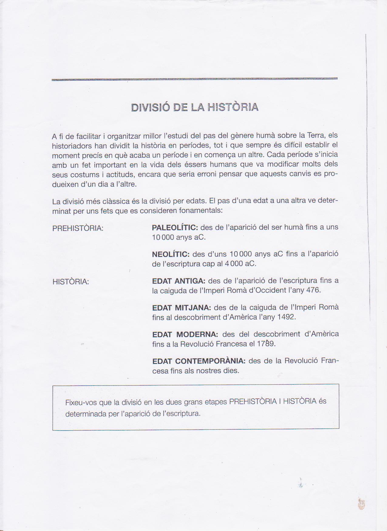 IMPRIMEIX EL FULL QUE DIU EIX CRONOLOGIA I FES LA DIVISIÓ DE LA HISTÒRIA AMB ELS SEUS PERÍODES CORRESPONENTS.