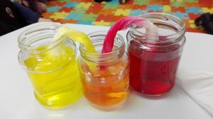 A UNS POTS DE VIDRE HEM POSAT AIGUA AMB PINTURA I DINS D’AQUESTS UNS TOVALLONS QUE COMUNICAVEN UN POT D’UN COLOR AMB UN ALTRE POT D’UN COLOR, ELS TOVALLONS S’HAN COMENÇAT A TINTAR DEL COLOR QUE TENIA L’AGIA DEL POT ON ESTAVA. PERÒ, S’HA TINTAT FINS QUE S’HA JUNTAT AMB EL COLOR DE L’ALTRE POT, FINS QUE S’HAN FET UN PETÓ.