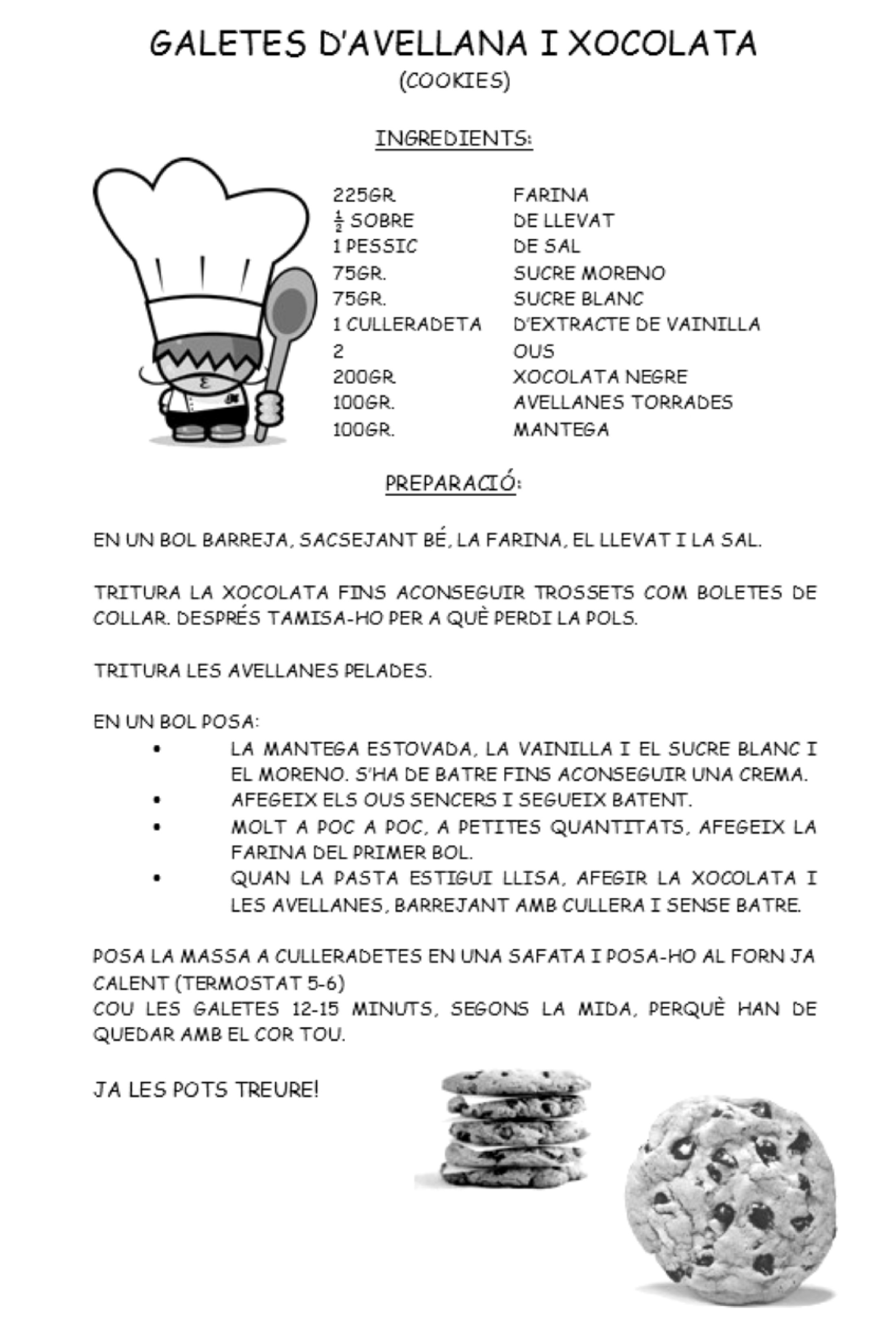 PER A LA FESTA DE LA CASTANYADA HEM PREPARAT UNA RECEPTA PER COMPARTIR AMB ELS COMPANYS DE L’ESCOLA: