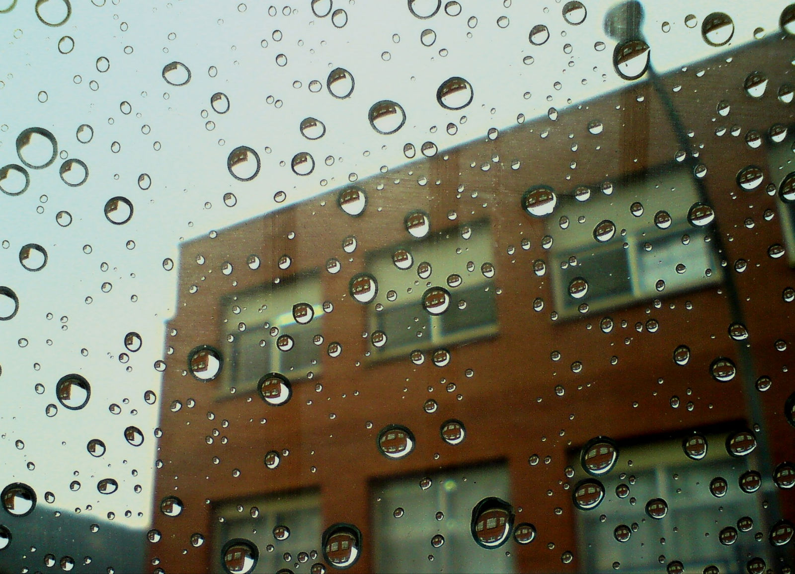 Com que us agraden els experiments, l’altre dia mentre m’esperava dintre del cotxe a les dotze que Mar sortís per anar a dinar, vaig fixar-me que en les gotes de pluja es reflectia la façana de l’escola i vaig fer una foto.