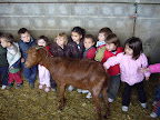 Avui hem anat a la granja i hem vist molts animalets! Hem vist gallines, conills (hem tocat un que es deia bigotis), cabretes (ens hem acostat a una que es deia Mercedes i li hem tocat les banyes), ovelles, una vaca (la Catalina), un porquet vietnamita… galls i gallines:
