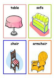 2. Vocabulary: Rooms. Do the exercise. Write the pieces of furniture you can find in 3 of the rooms.