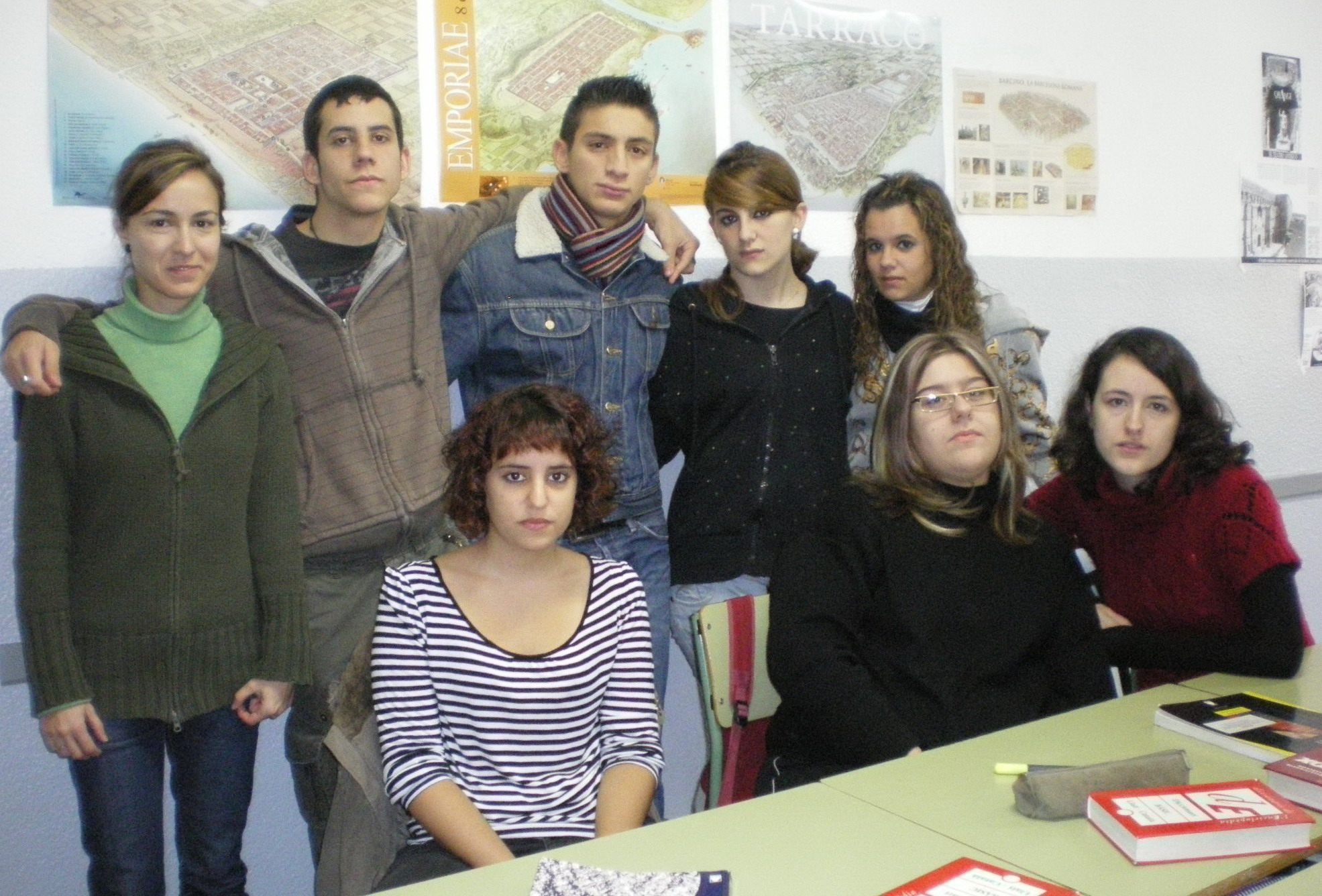 Com podeu veure, som set alumnes, dos nois i cinc noies. Assegudes de dreta a esquerra: la Laura B, la Núria i la Laia. Dretes, i en el mateix ordre: la Laura C, la Maria, l’Ignaci, l’Ivan i la Raquel, “la profe”. Ens definim com un grup molt variat, ja que cadascun de nosaltres tenim aficions diferents però que ens respectem i ens ajudem a l ´hora de treballar. Imaginem que és per això que hi ha tan bon ambient a classe.