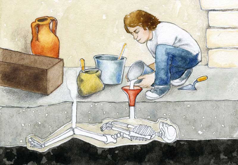 8. Dibuix il·lustrant el procés de creació de rèpliques de cossos amb guix.