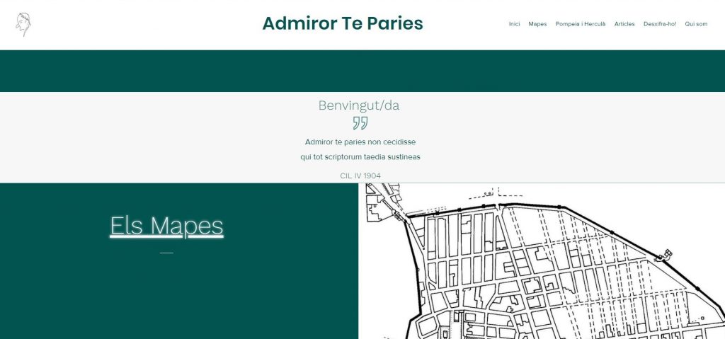 Cansats de veure les típiques pàgines sobre temes de l’antiguitat fent servir dissenys intencionadament “antics” o “enfocats en l’època”, vam voler buscar un enfocament més modern pel disseny de la nostra web. Vam triar una paleta de colors de verds foscos i grisos i un aspecte general minimalista perquè la web fos fàcil de navegar i no cansés la vista. A la pàgina d’inici, l’usuari trobarà ràpidament un breu resum de tots els continguts de la pàgina web, amb enllaços a cadascun dels apartats.