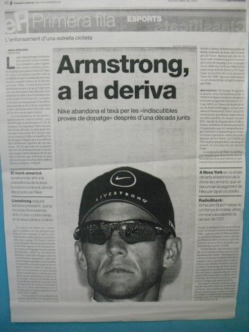 La unió ciclista internacional (uci) ha retirat tots els titols a Lance Armstrong, un ciclista nord americà ,guanyador dels últims 7 tours. El motiu ha estat, que han descobert proves sobre dopatge de tot l’equip Nike ha estat el patrocinador durant 10 anys. La samarreta groga en ciclisme és pel guanyador de la classificació.