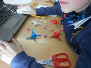 Per fer-les vam utilitzar material com llana, plastelina, fil ferro, pals i escuradents. Ara sabem que la adenosina fa comunicar les celules del nostre cervell quan estem cansats; la cafeïna s’assembla molt a l’adenosina i impedeix que la sensació de cansament es trasmeti sobre les celules ( això és el que nosaltres vam entendre perque no som experts)
