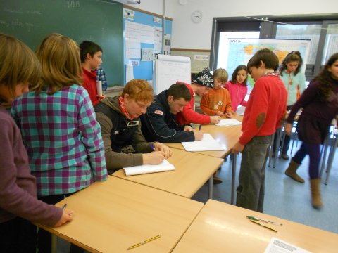 Gràcies el Ton, el Jan, el LLuc i la Martina han vingut a l’escola i ens han contestat algunes de les preguntes que ens haviem preparat a l’estona d’anglès.