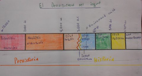 A la classe estem fent una línia del temps perquè volíem saber quin any es va descobrir el iogurt. Sabíem que feia 4000 anys des d’ara, però no sabíem quin any era.
