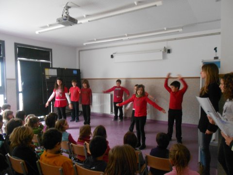 Aquest matí, la nostra classe ha fet un teatre musical que es titula Mamma Mia. Ens hem repartit en dos grups i hem interpretar dues cançons: Dancing Queen i Mamma Mia, aquesta última cantada en català per nosaltres mateixos.