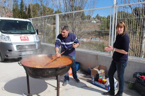 I quan vam arribar a l’escola estaven fent el dinar: paella. Hi havia molta gent del poble que es va afegir al dinar després de fer un concurs de disfresses.