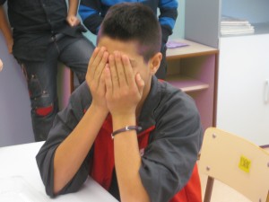 La verdad es que una persona de 14 años no puede ponerse las manos en la cara para que no lo vean. Disfruta de la edad que tienes y empieza a trabajar más, te estas haciendo mayor y ahora debes empezar a plantar lo que quieras recoger de mayor. Si no entiendes la paradoja, le preguntas a alguno de tus profes cercanos, dígase Joan, Mercè, Dolors, que seguro te lo explicaran con mucho cariño.