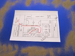 QUAN HEM ENTRAT A CLASSE, ENS HEM TROBAT EL PLÀNOL DE L´ESCOLA AMB UNA CREU QUE INDICAVA EL DESTÍ DE ALGUNA COSA QUE ENS ESTAVA ESPERANT.
