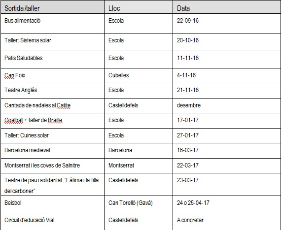 Les sortides que realitzarem