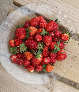 Avui abans de dinar hem fet el vermut amb la collita de les maduixeres. Hem menjat unes maduixes boníssimes!!