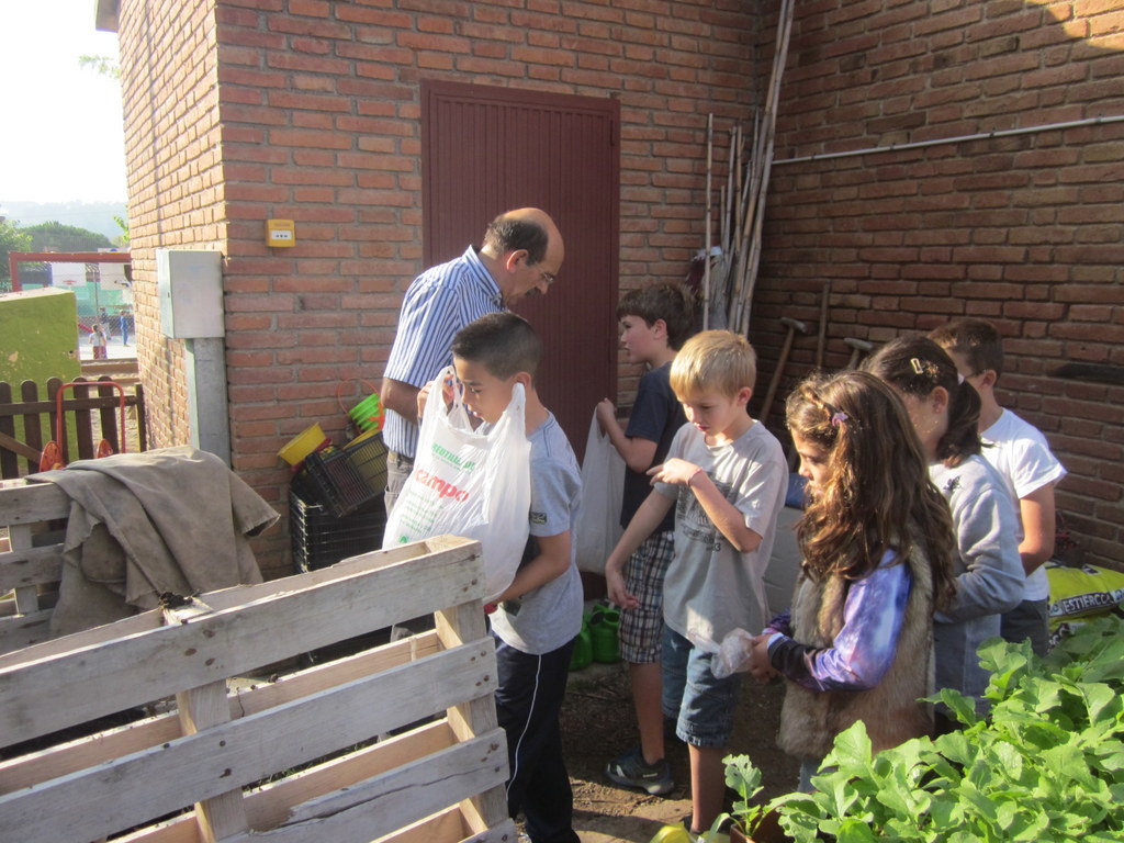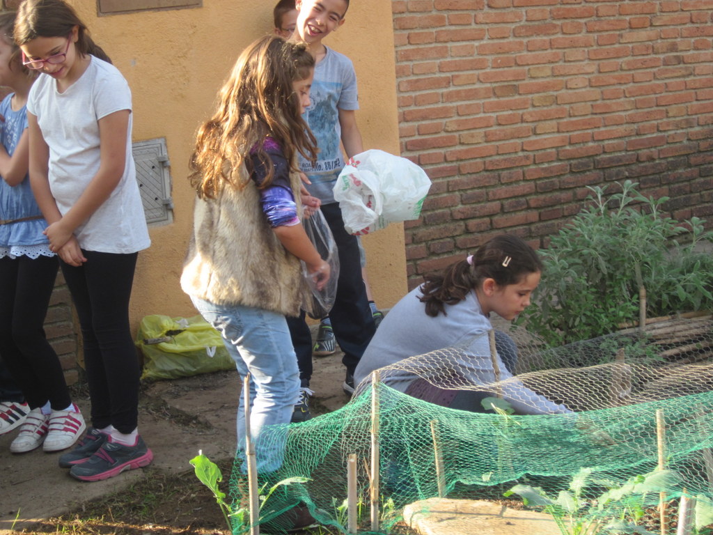 Avui el senyor Joan ens ha explicat havíem de recollir papers i altres brutícies de l’hort també hem agafat rasclets per treure males herbes.
