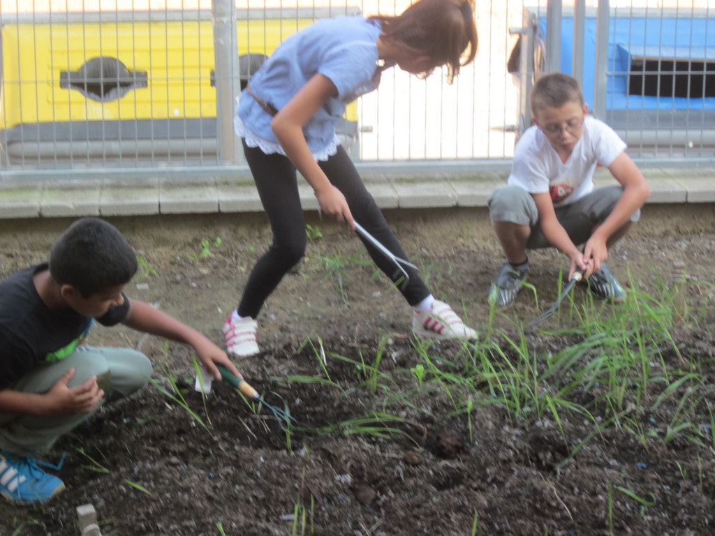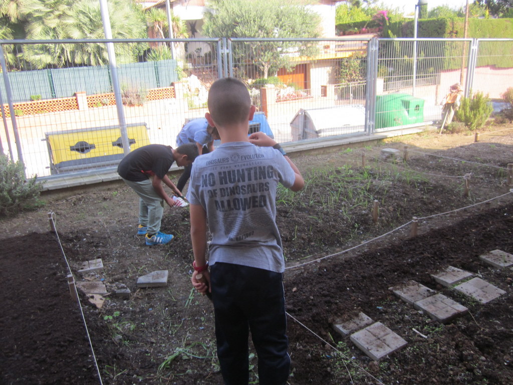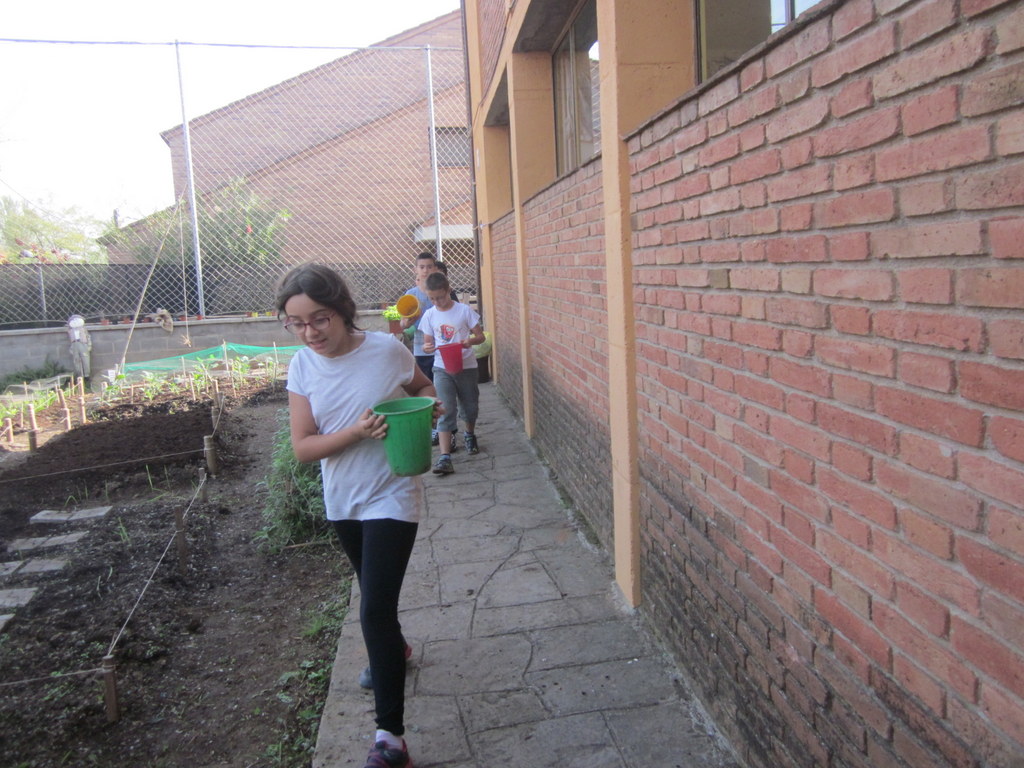 Hem repartit guants i eines .Hem arrencat les herbes d’una parcel·la i el camí i les hem tirat a la compostadora.Hem posat closca d’ou perquè els cargols no es mengin els bròquils. Reguem un dia si un no si no plou. CLIKA I VEURAS FOTOS