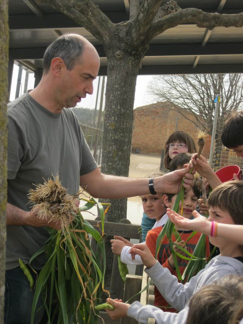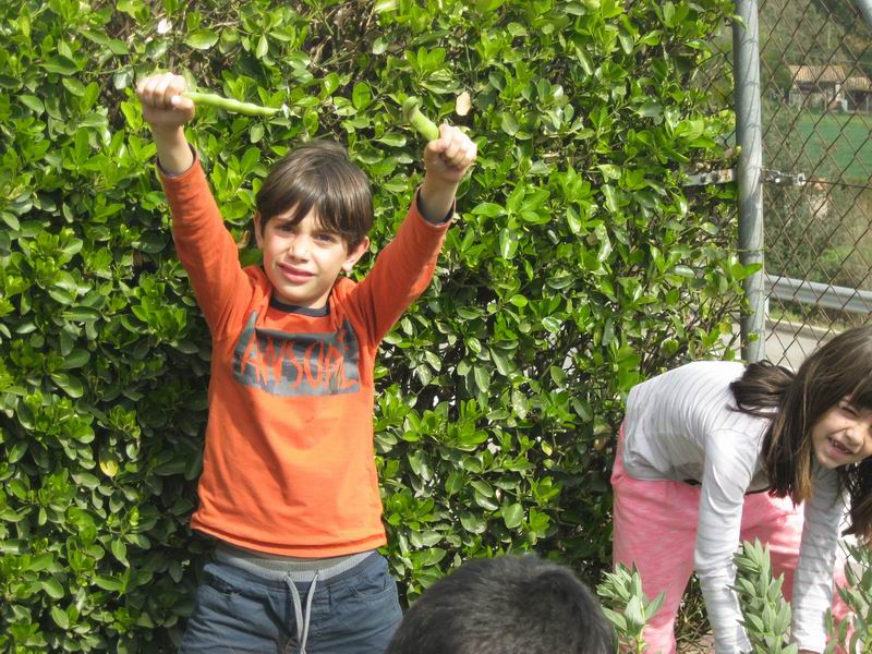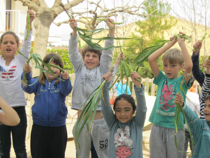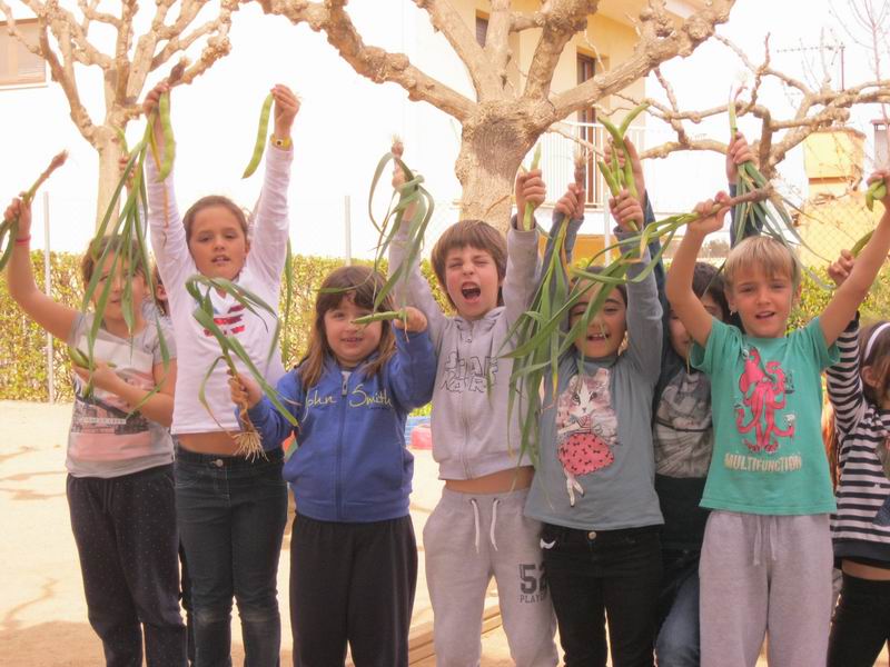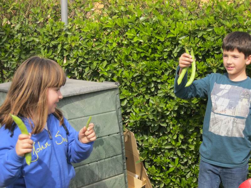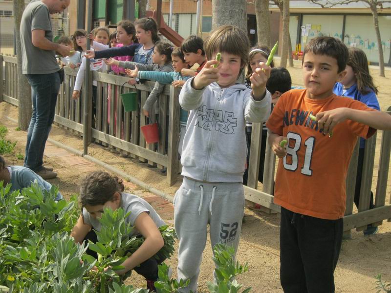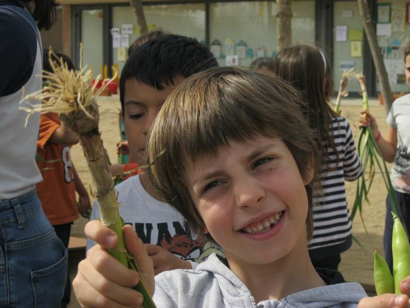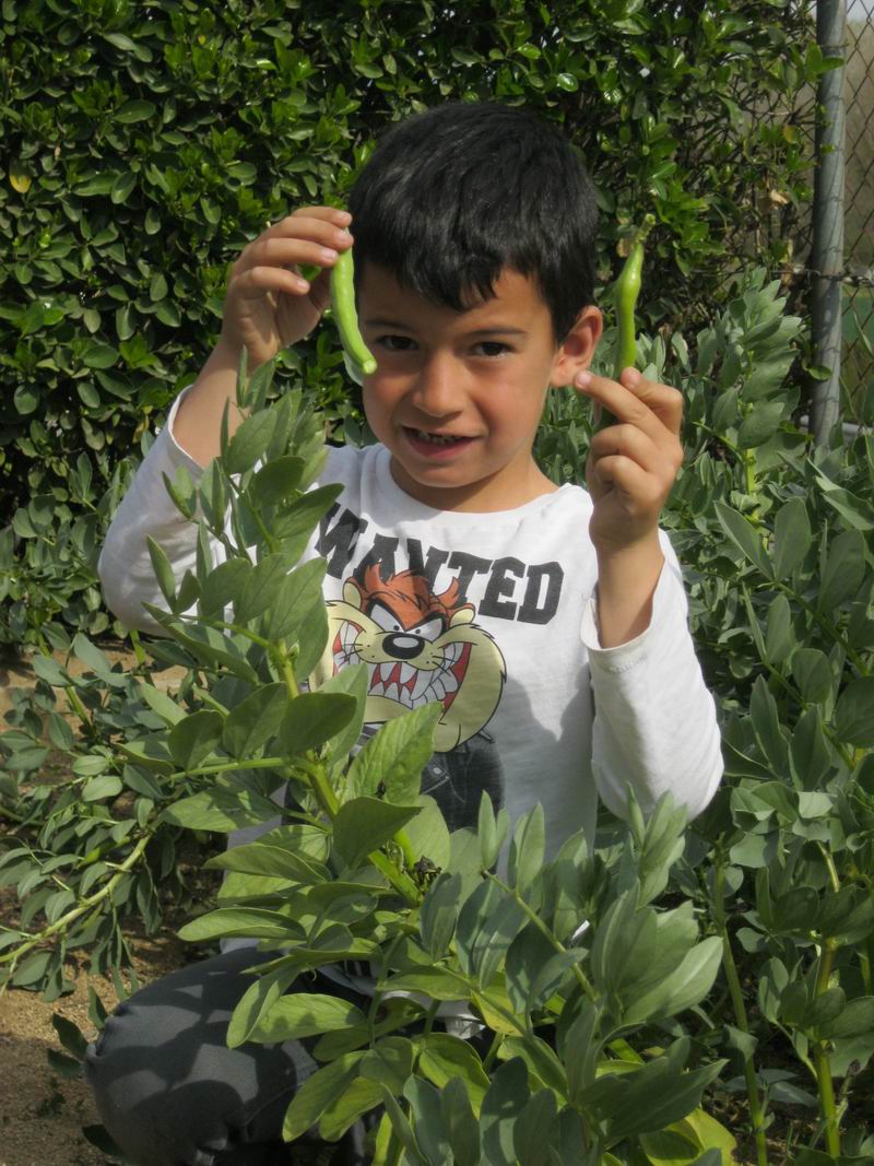 Quan hem tornat de les vacances de setmana santa ens hem trobat l’hort amb les faveres plenes de faves i les hem anat a collir. També hem collit els alls i unes quantes fulles de bleda. Els pèsols ja estan ben florits. La primavera ja és aquí !!