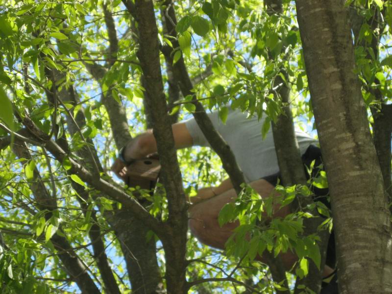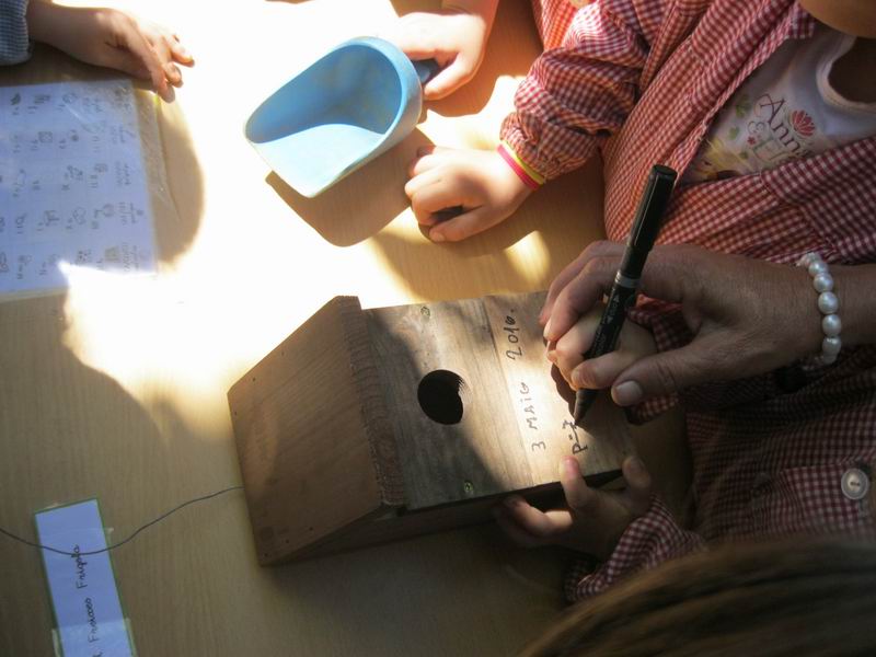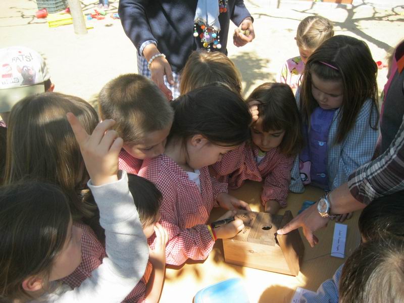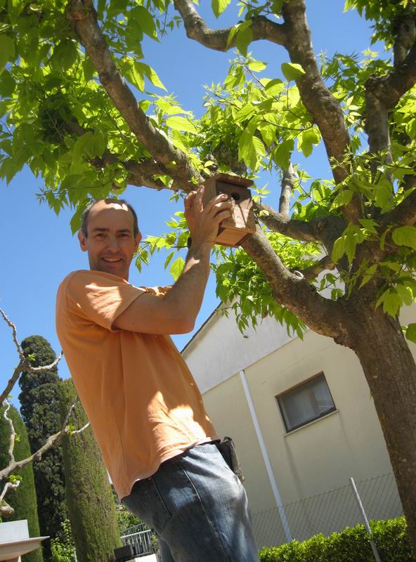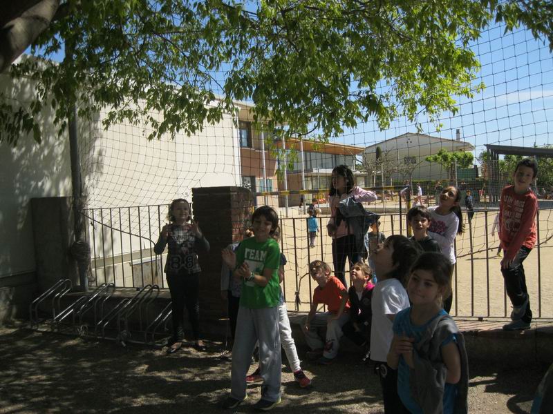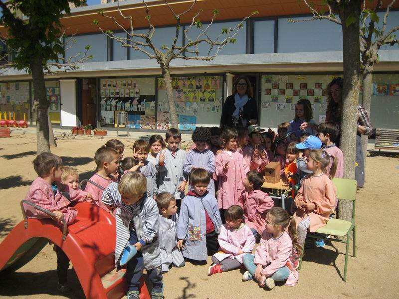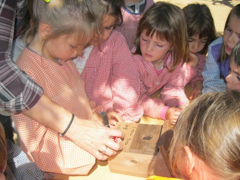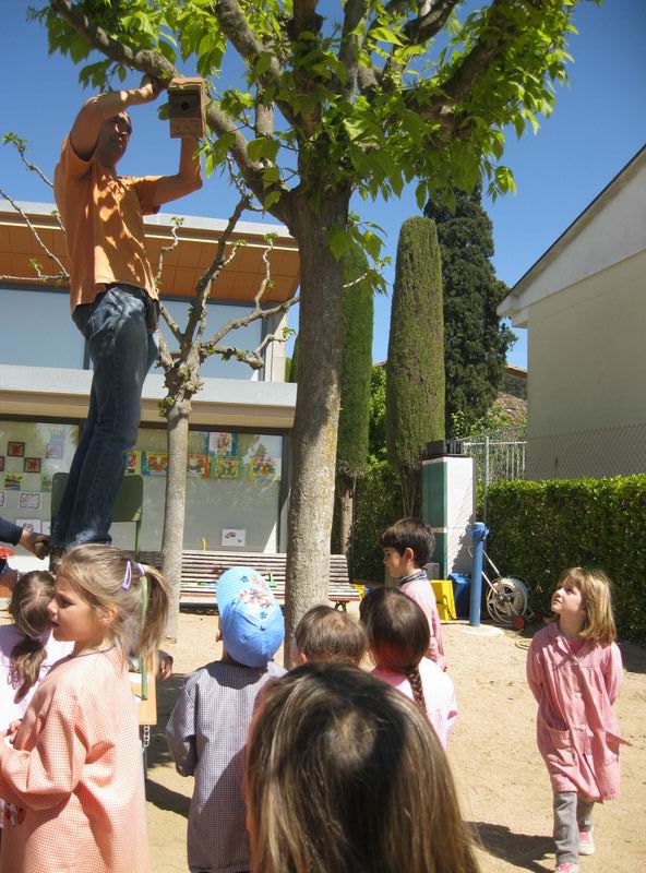 El dimarts, 3 de maig hem penjat caixes niu al pati de l’escola.