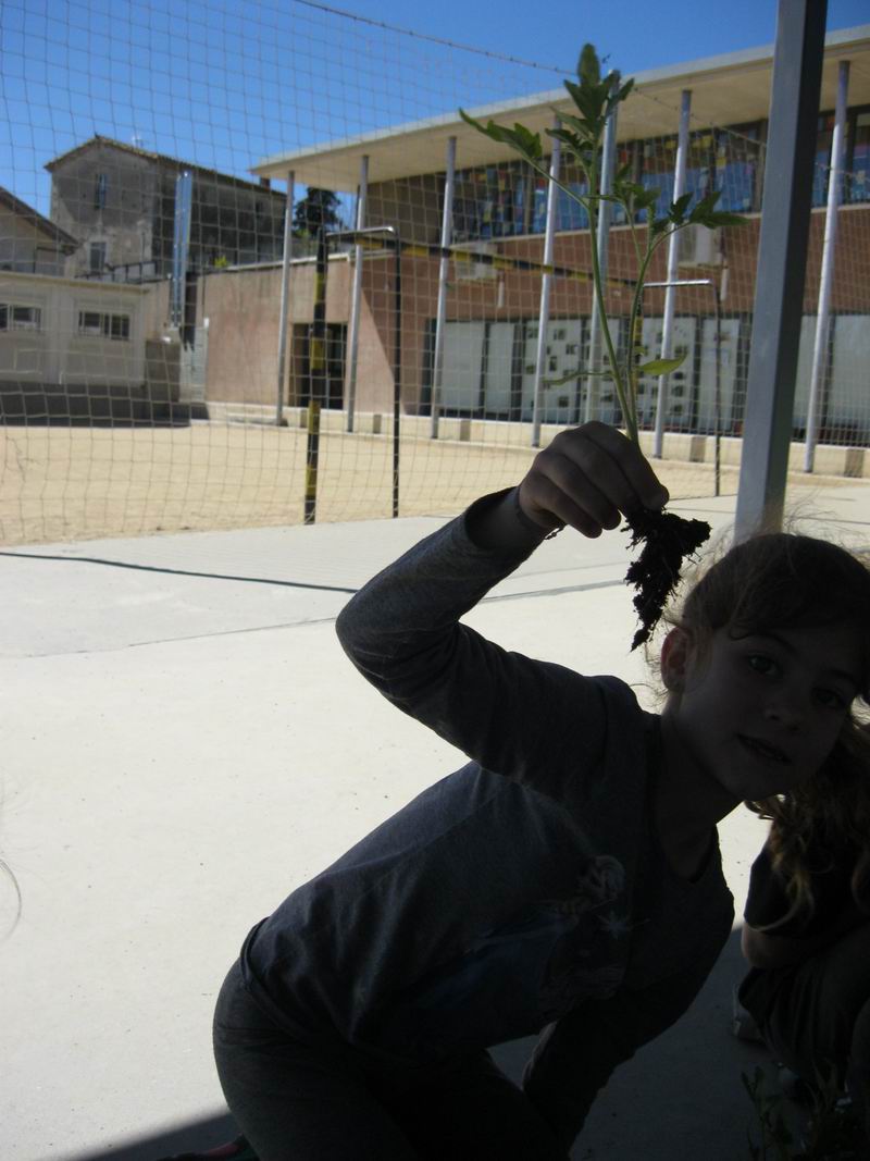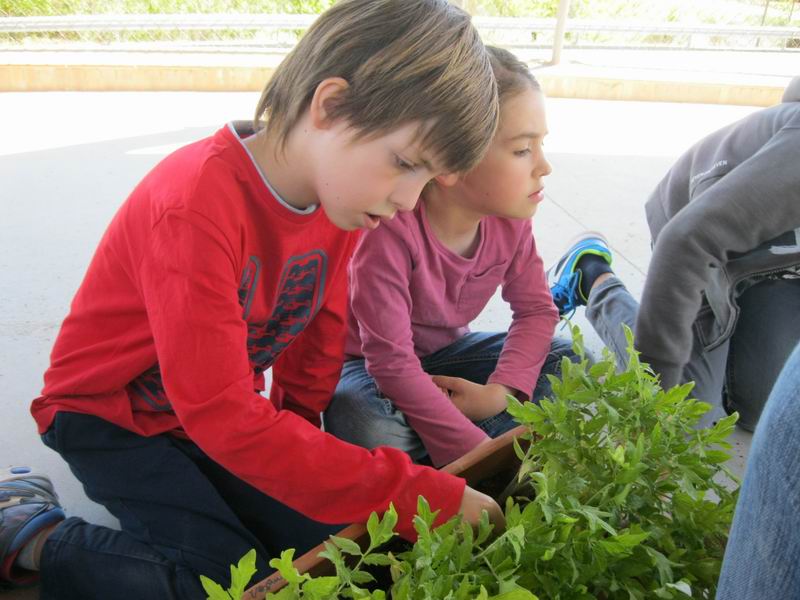 Ja hem transplantat les tomateres que vam sembrar en les jardineres a l’hort. Ara només cal esperar que creixin de pressa!