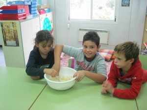 Per celebrar la castanyada vam fer panellets i vam menjar castanyes torrades pel castanyer, estaven molt bones.