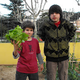 0Aquí tenim en Dani i en Sergi preparant una amanida verda. Amb un dels enciams que vam collir l’altre dia.