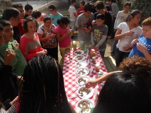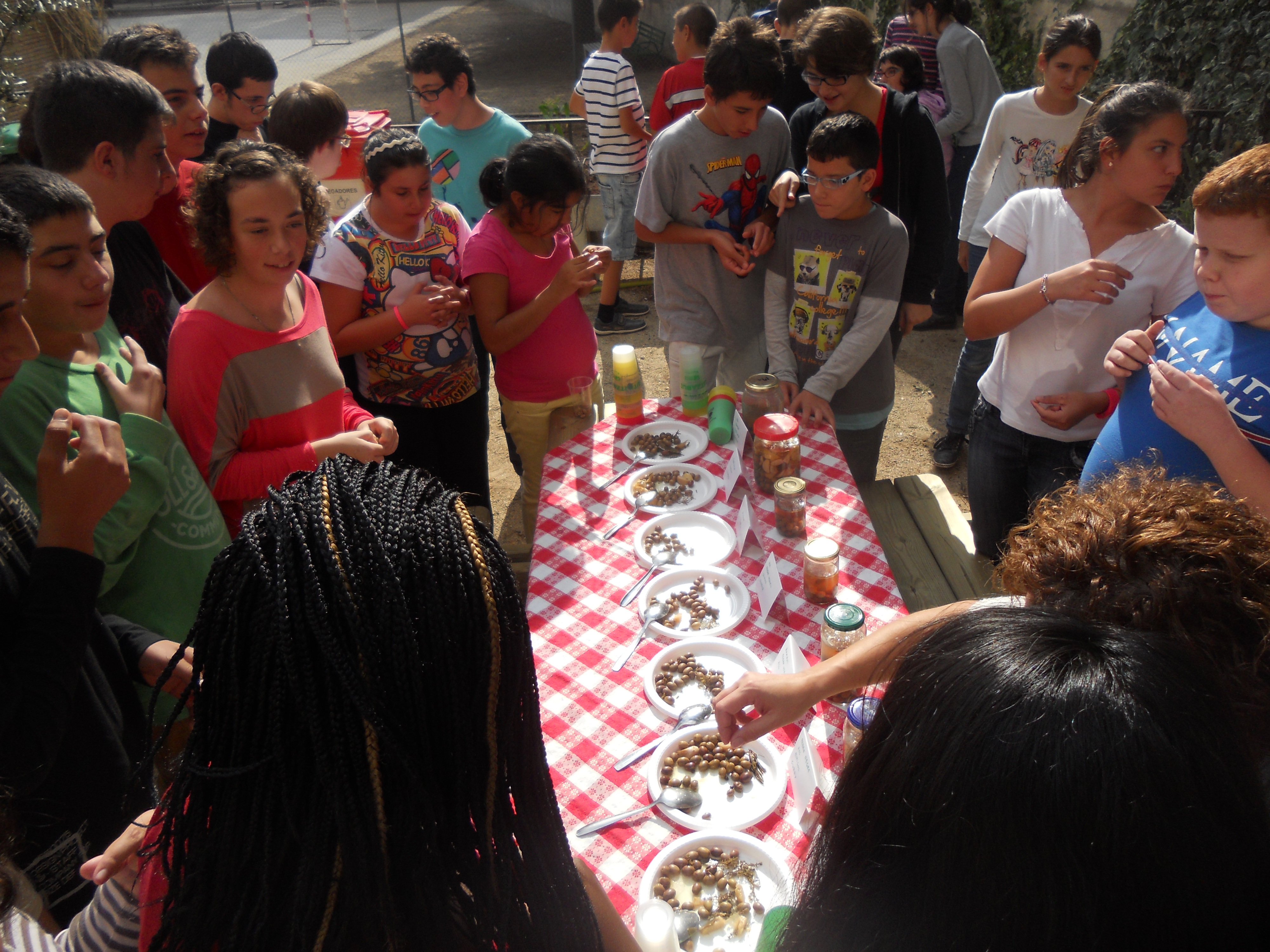 Ahir, els alumnes de la ESO van inaugurar la taula de treball de l’hort amb un tast d’olives en conserva feta el curs anterior.