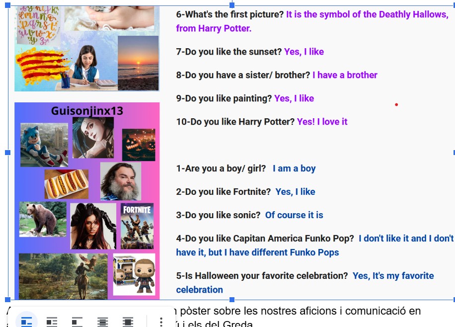 Durant el curs els alumnes fan un intercanvi de produccions escrites (pòsters digitals amb els seus gustos, arbre genealògic…) amb altres companys de primer de Besalú per a compartir afinitats i experiències.
