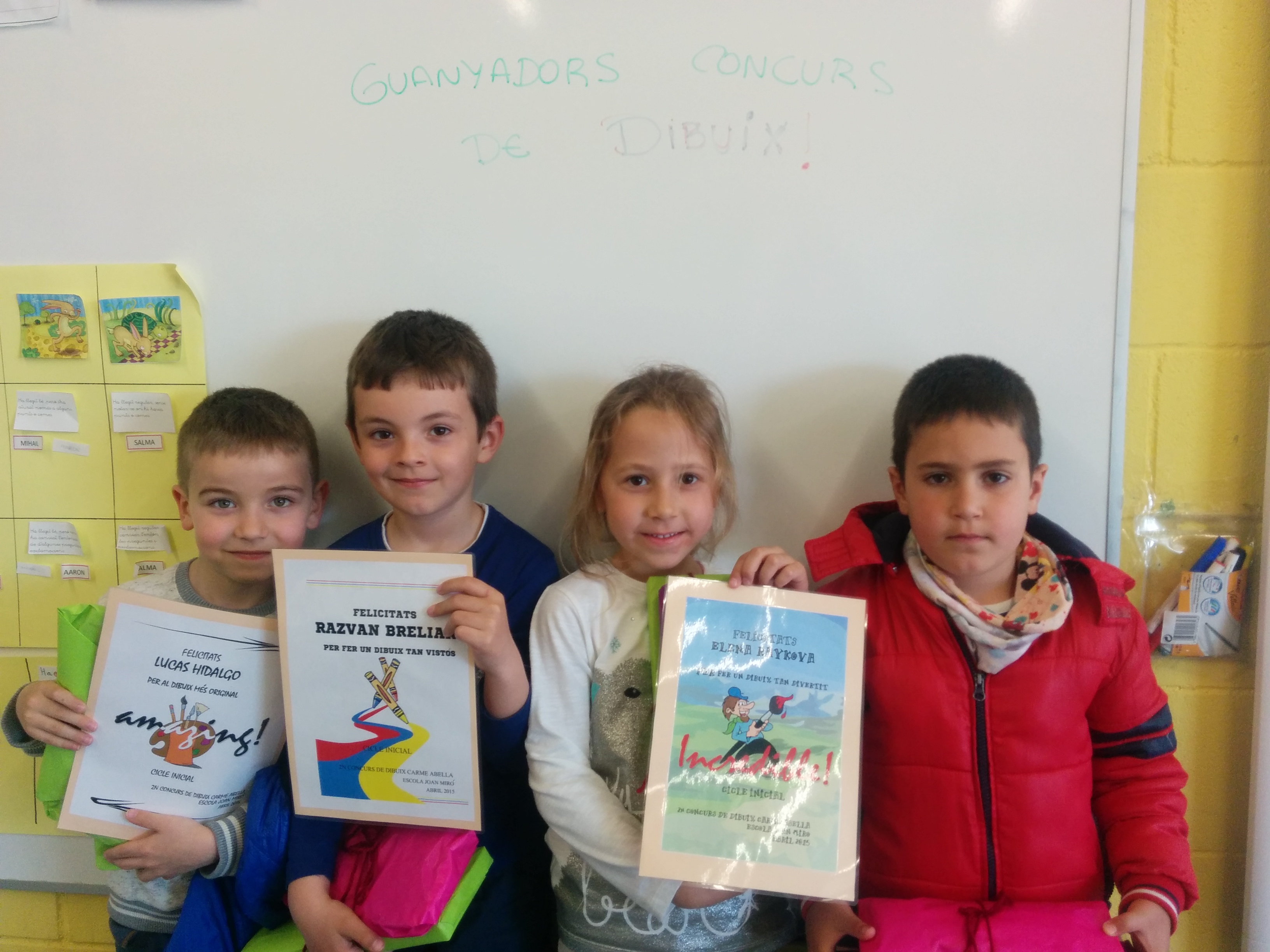 Avui hem celebrat a l’ escola el segon concurs de dibuix en homenatge a la nostra estimada directora ” Carme Abella”. I hem tingut quatre guanyadors a primer, encara que tots s’ ho mereixien. Aquí els teniu: el Lucas, el Razvan, l’ Elena i l’ Eric. Felicitats!