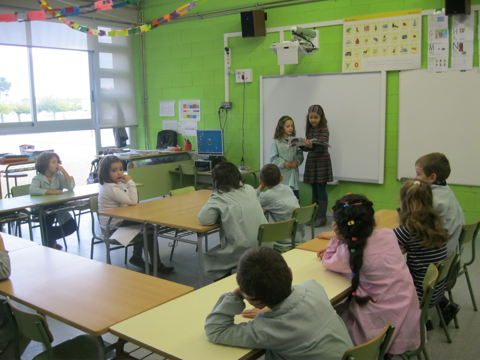 El pare de l’Elsa va venir a l’escola i juntament amb l’Elsa van contar-nos un conte sobre la pasqua i la mona.