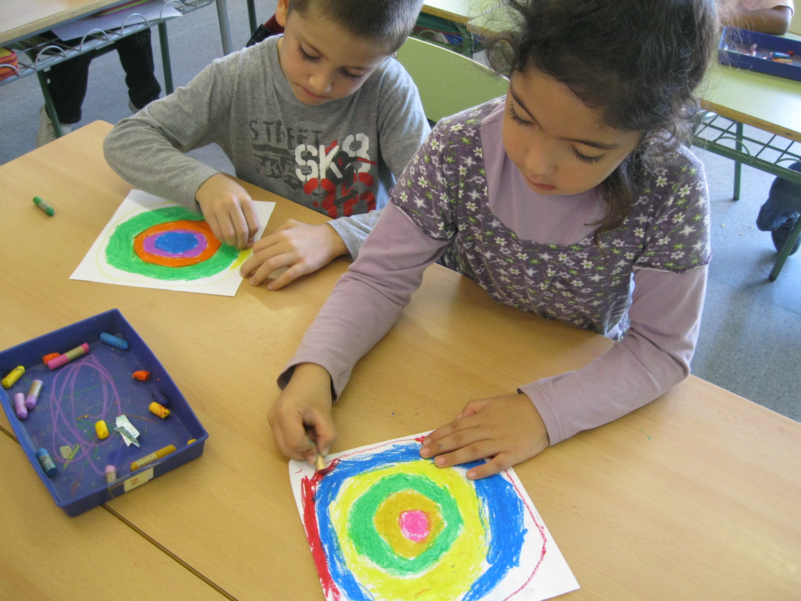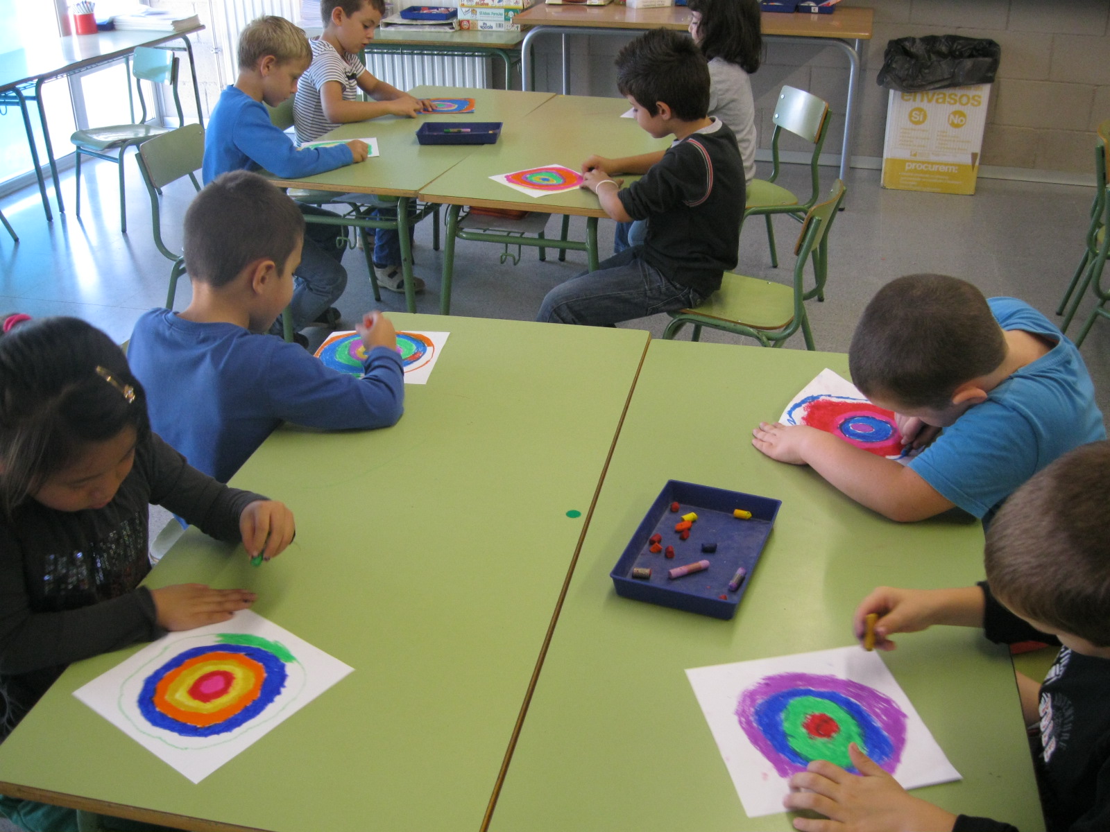 Els nens i nenes de primer a l’hora de l’art & craft hem estat treballant les formes i les línies amb l’ajuda de Kandinsky i de la teacher ALBA.