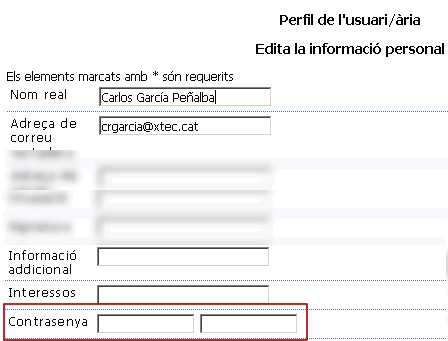 Us apareixerà ara aquesta imatge on podreu canviar la contrasenya al final de la pàgina