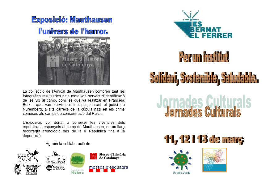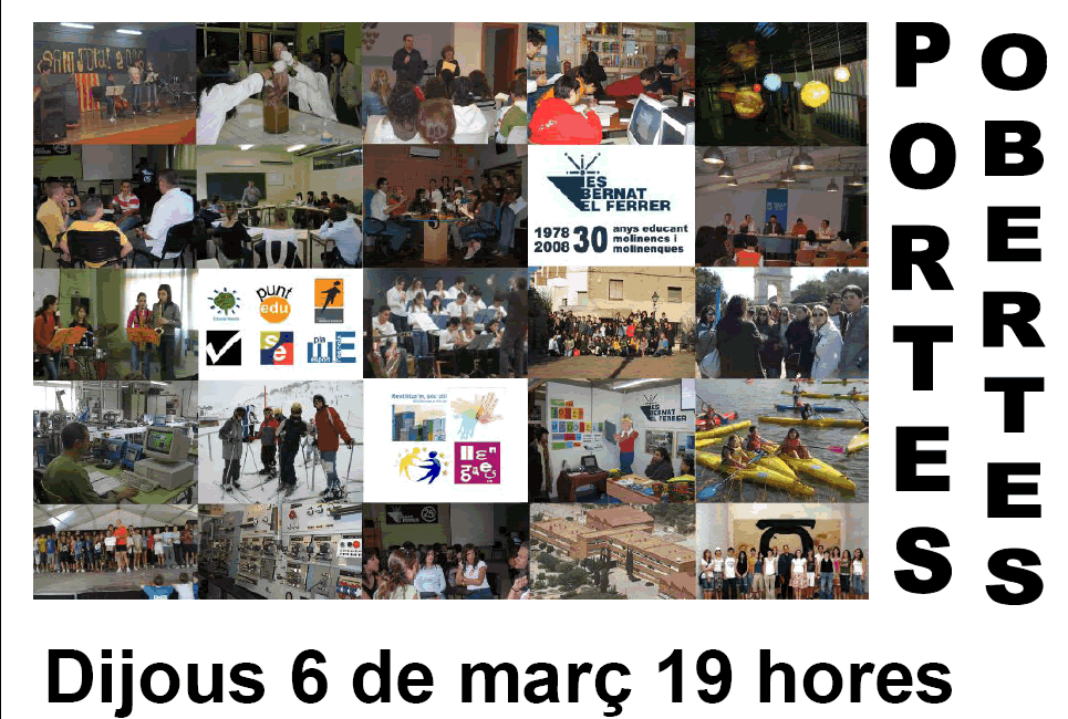 El proper dijous 6 de març a les 7 de la tarda es farà a l’Institut la Jornada de Portes Obertes. Aquesta jornada és la culminació de les diverses activitats que es realitzen per donar a conèixer el centre als alumnes que estan acabant la primària i que en el futur cursaran 1r. d’ESO.