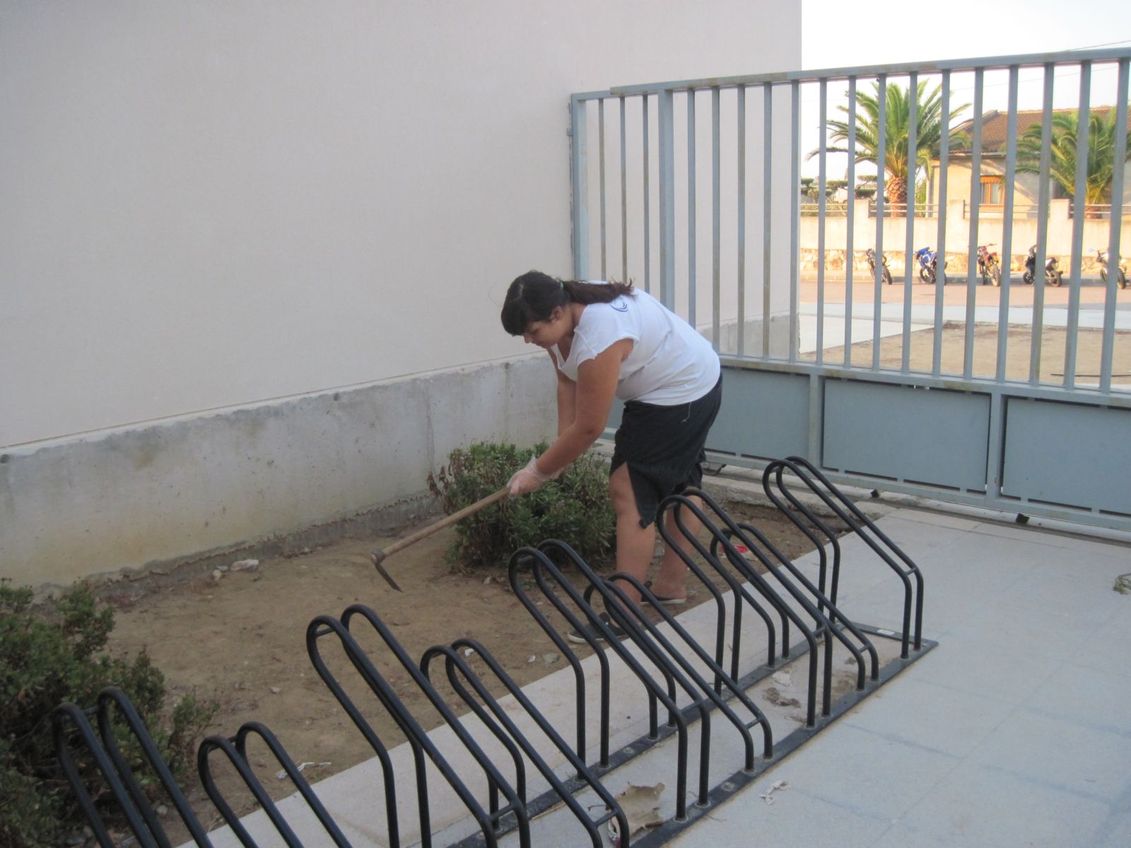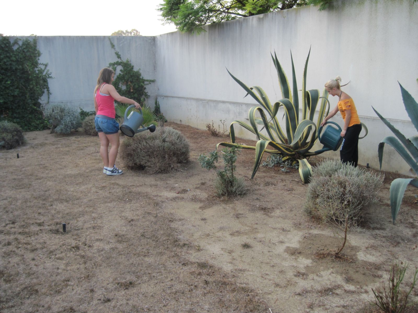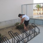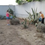 Mentrestant, la Bàrbara remou la terra del jardí de l’entrada on volem plantar flors. I Paula i Laia, reguen les plantes del pati dels profes, que amb la calor que fa, deuen estar molt assedegades. |