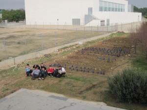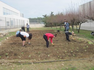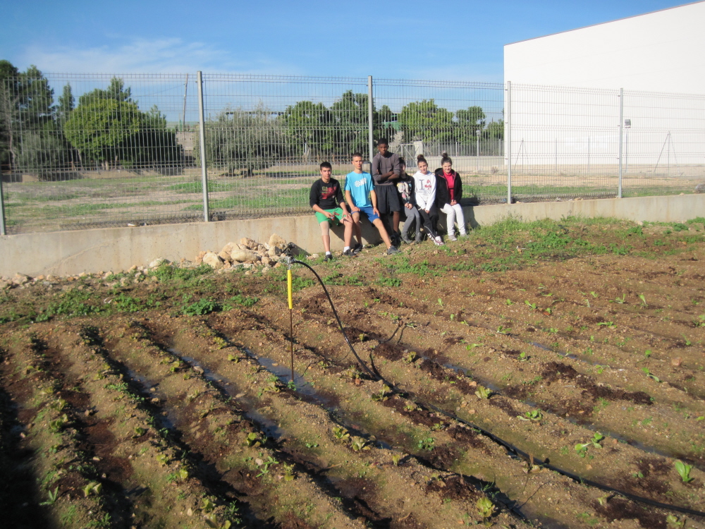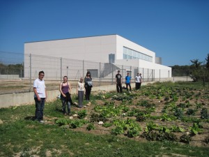 Estem tot el grup després d’haver acabat de plantar les verdures. |