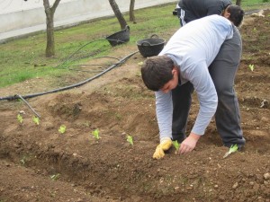 En Dani està acabant de plantar aquest enciam. |