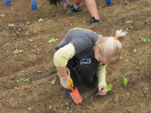 Aquí la Paula està plantant un enciam. |