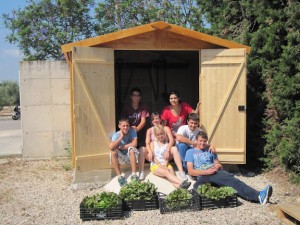 Aqui estem a la caseta de fusta que ens van fer per a guardar les eines, ja que l’antiga era molt vella. Estem amb la última collita de l’any. |