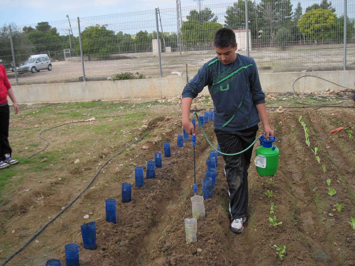 Aquí la Laia està posant el rec per a regar les plantes. |